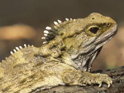 Their skulls and sexual habits are birdlike, but they have the crude ears of a turtle and a brain like an amphibian's. Their primitive hearts and lungs predate all of those. Strangest of all is the vestige of a "third eye" planted in the top of their skull like a scaly pimple. Tuataras are not lizards. Would you have confused them with lizards if you had seen one?